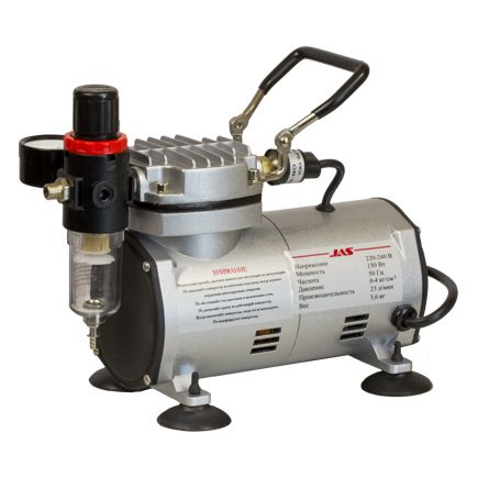 Компрессор Jas 1202 среднего уровня, является упрошенной версией Jas 1203. Ручная регулировка давления на выходе: 0,2 - 4 атмосфер. Бюджетное, качественное решение для начинающих аэротату мастеров. Входит в базовый набор для аэротату. Компактные размеры позволяют его использовать в салонах красоты и на точках аэротату с небольшой загруженностью (1-5 рисунков в час).