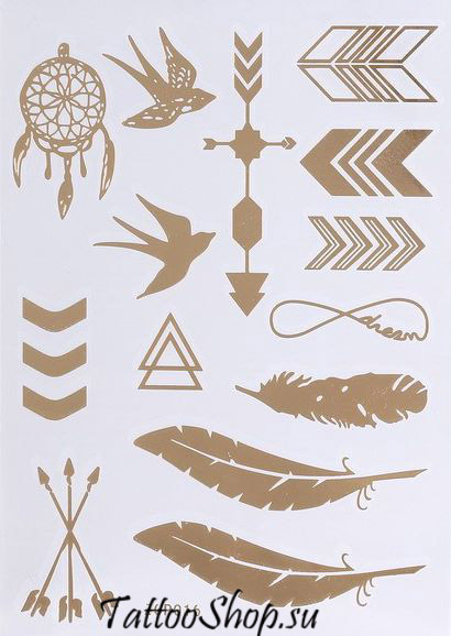 Набор для нанесения переводных флеш-тату (мерцающих) рисунков, который выглядят как жидкое золото или серебро.